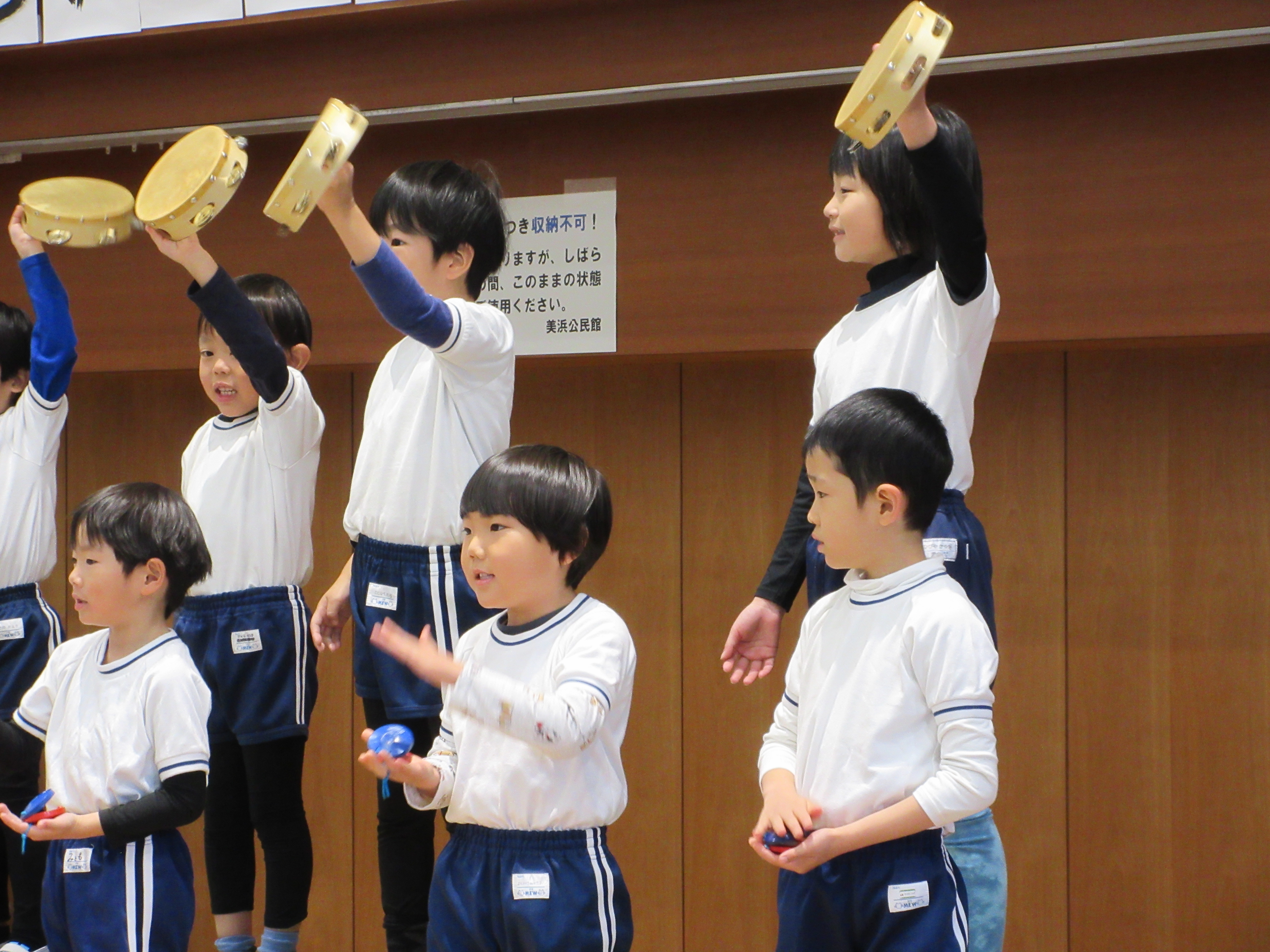 合奏「てのひらをたいように」おやつ後の時間を中心に取り組みを進めてきた5歳児さん。歌詞が定着するまで繰り返し取り組んでいくうちに、大きな声で歌えるようになってきました。楽器の演奏では、楽器ごとに鳴らし方が違うため、一斉に演奏すると友だちにつられてしまうこともありました。楽器の担当毎の取り組みなどもして、本番には気持ちを合わせた素敵な演奏となって良かったです。