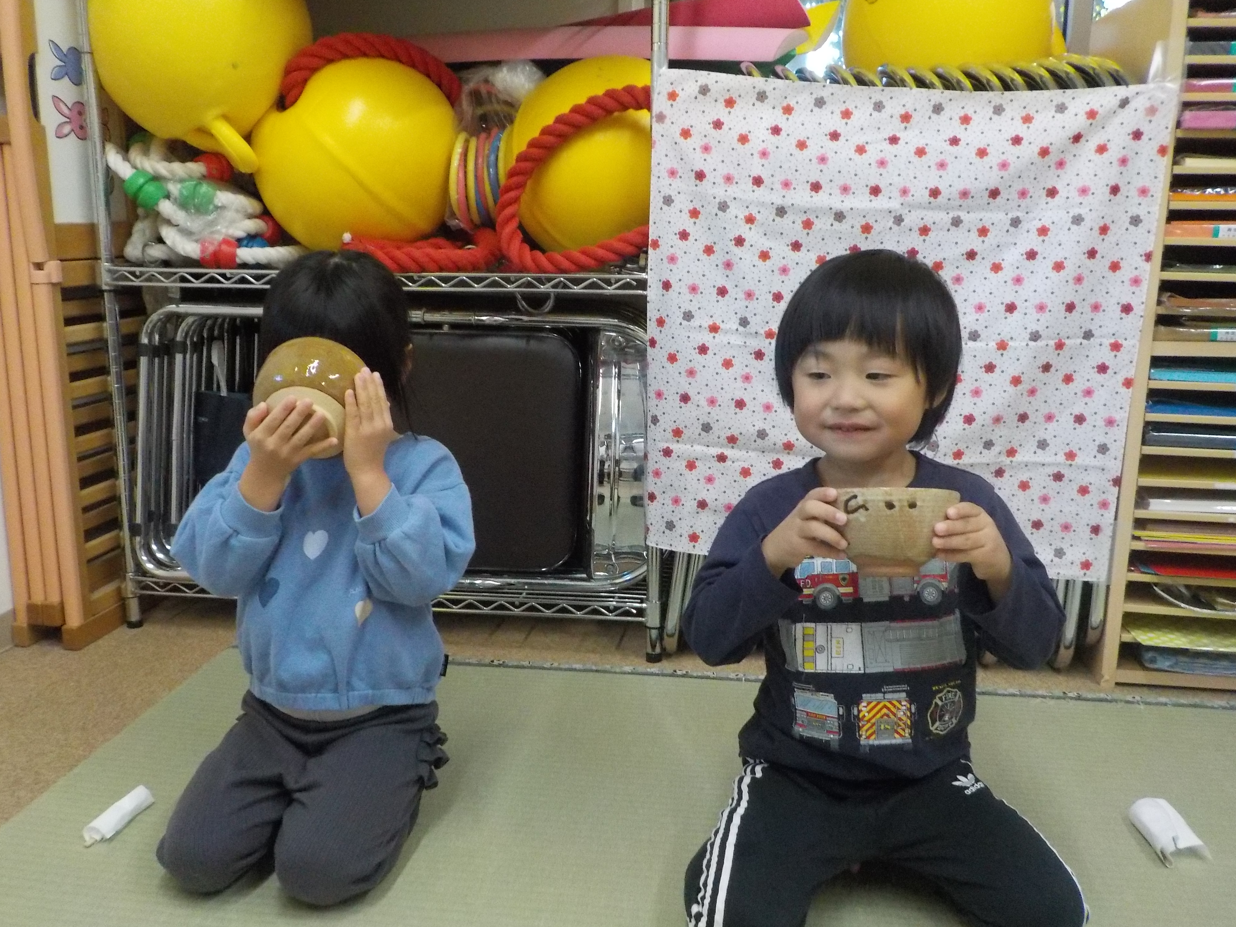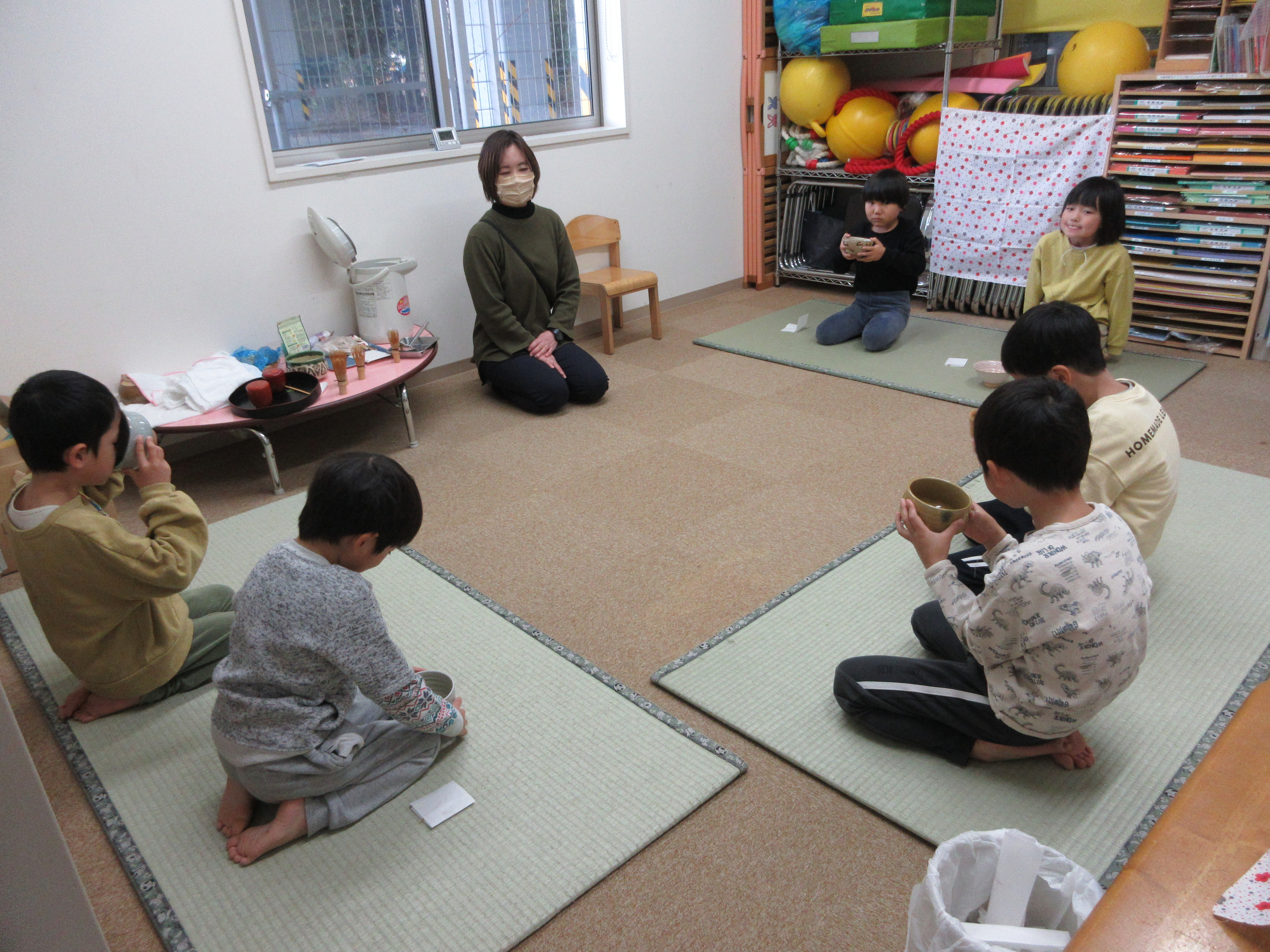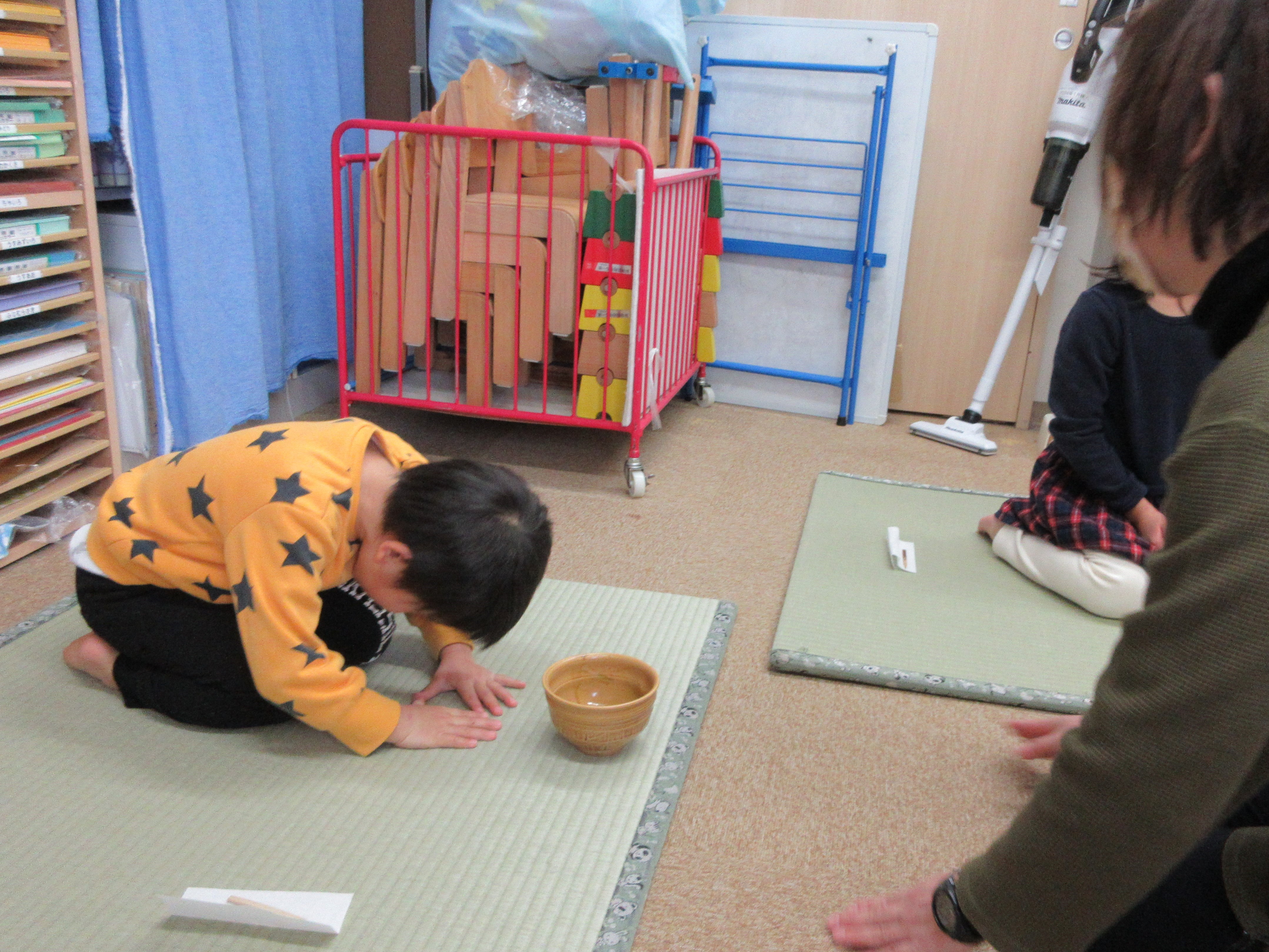 4歳さんは姿勢をしっかり意識し丁寧にお辞儀をするなどして、お茶会の作法を楽しみました。挨拶も上手に行っていましたよ。