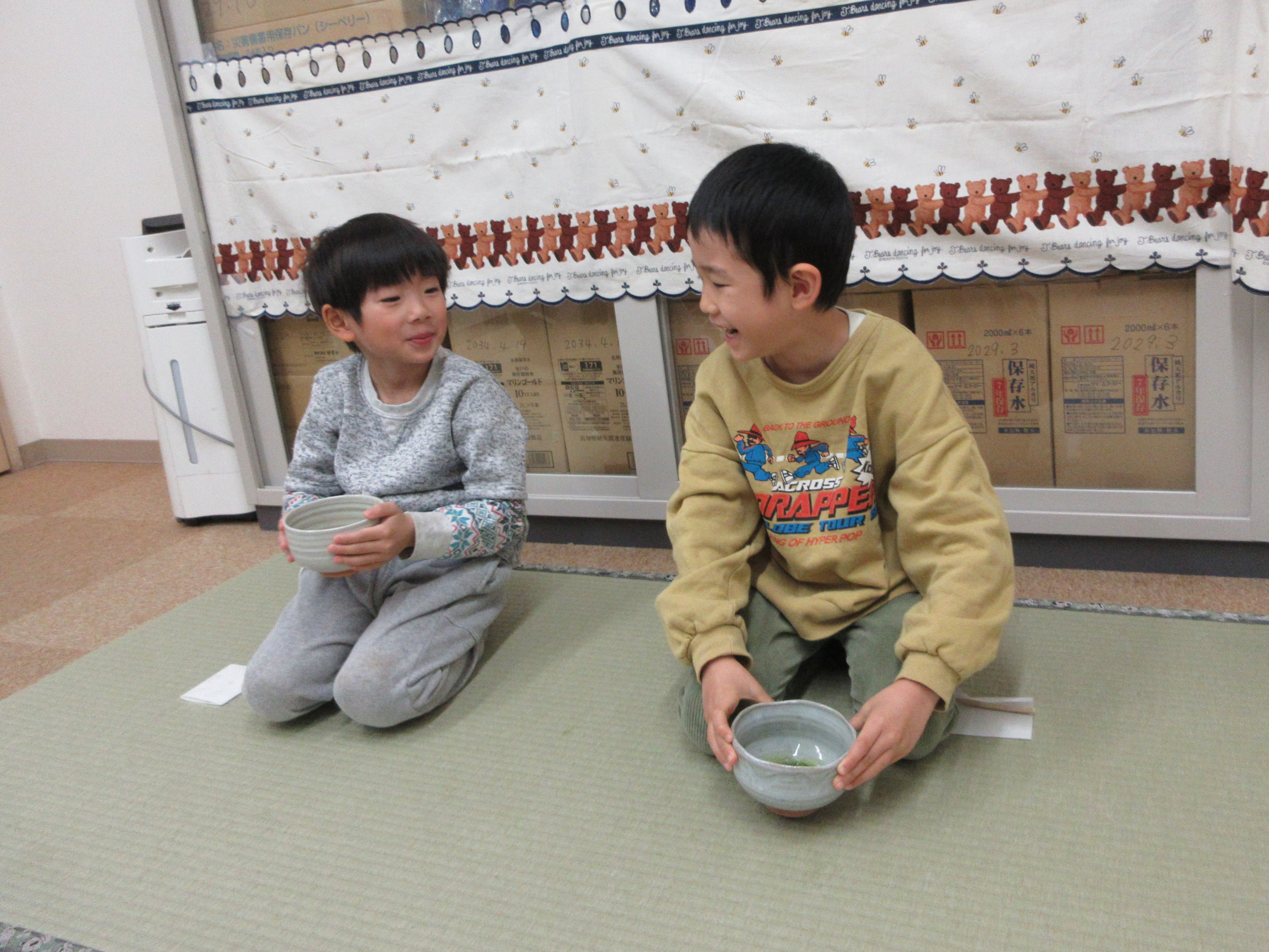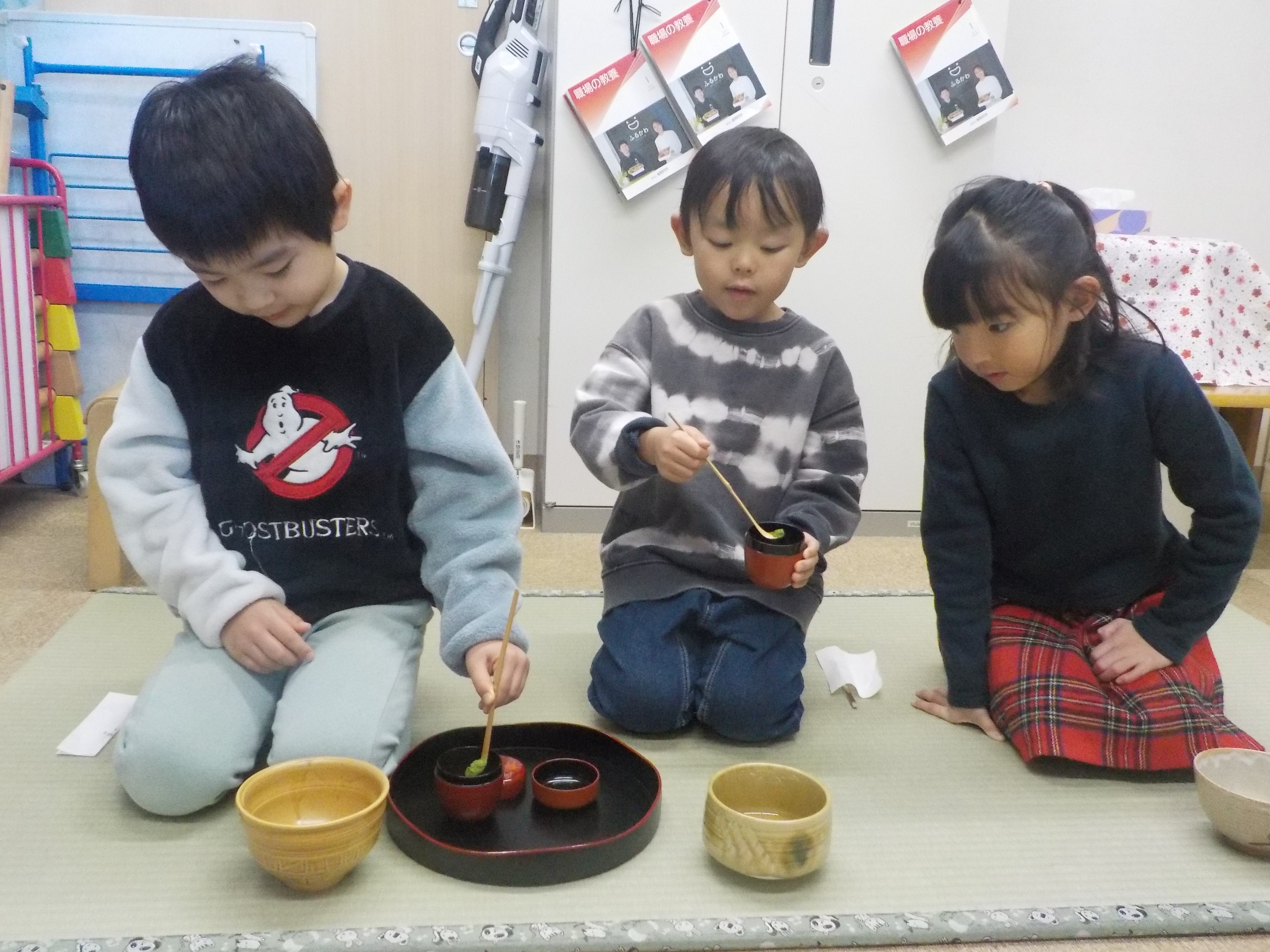 ようかんは大人気でよく食べていましたよ。抹茶も「苦いなぁ」と言いながらもちょっとずつ飲んでいて、中には全部飲みきっている子もいました。