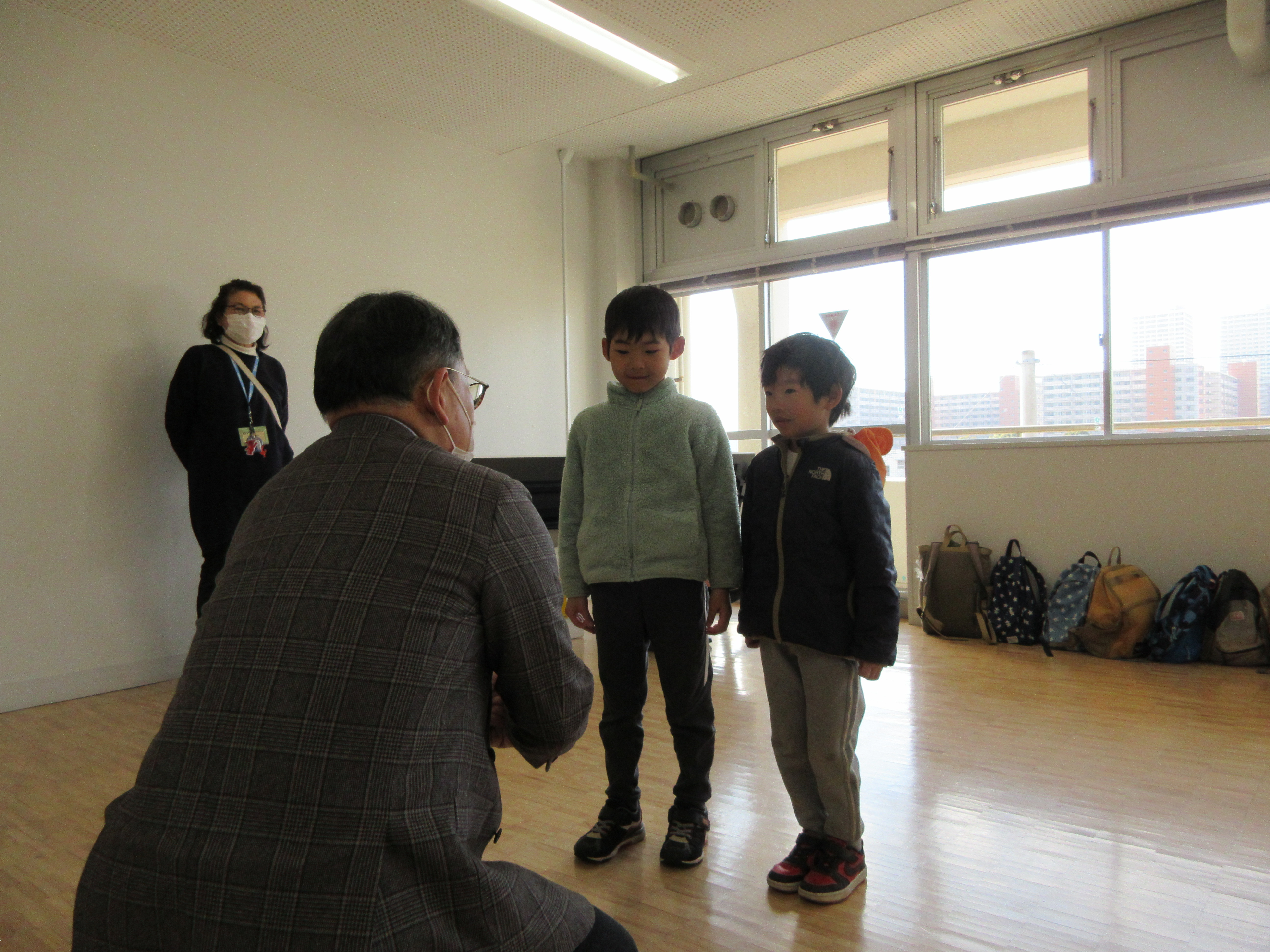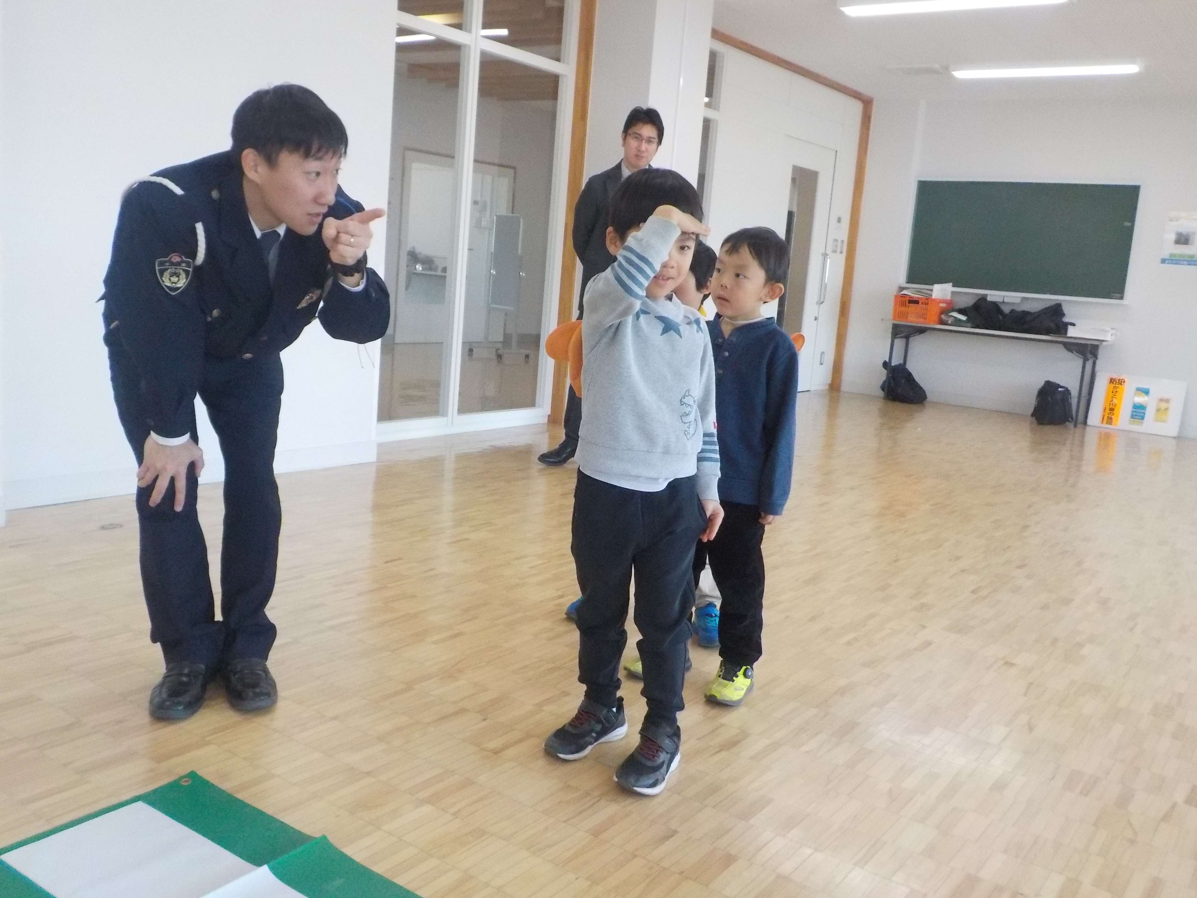 教えていただいたことを踏まえて、実践も行いました。自分たちで対応するということに少し緊張していた5歳さんでしたが、「知っている人の名前を出されても付いていかない」「大声で助けてと言う」など覚えたことを思い出しながら、行うことが出来ました。
