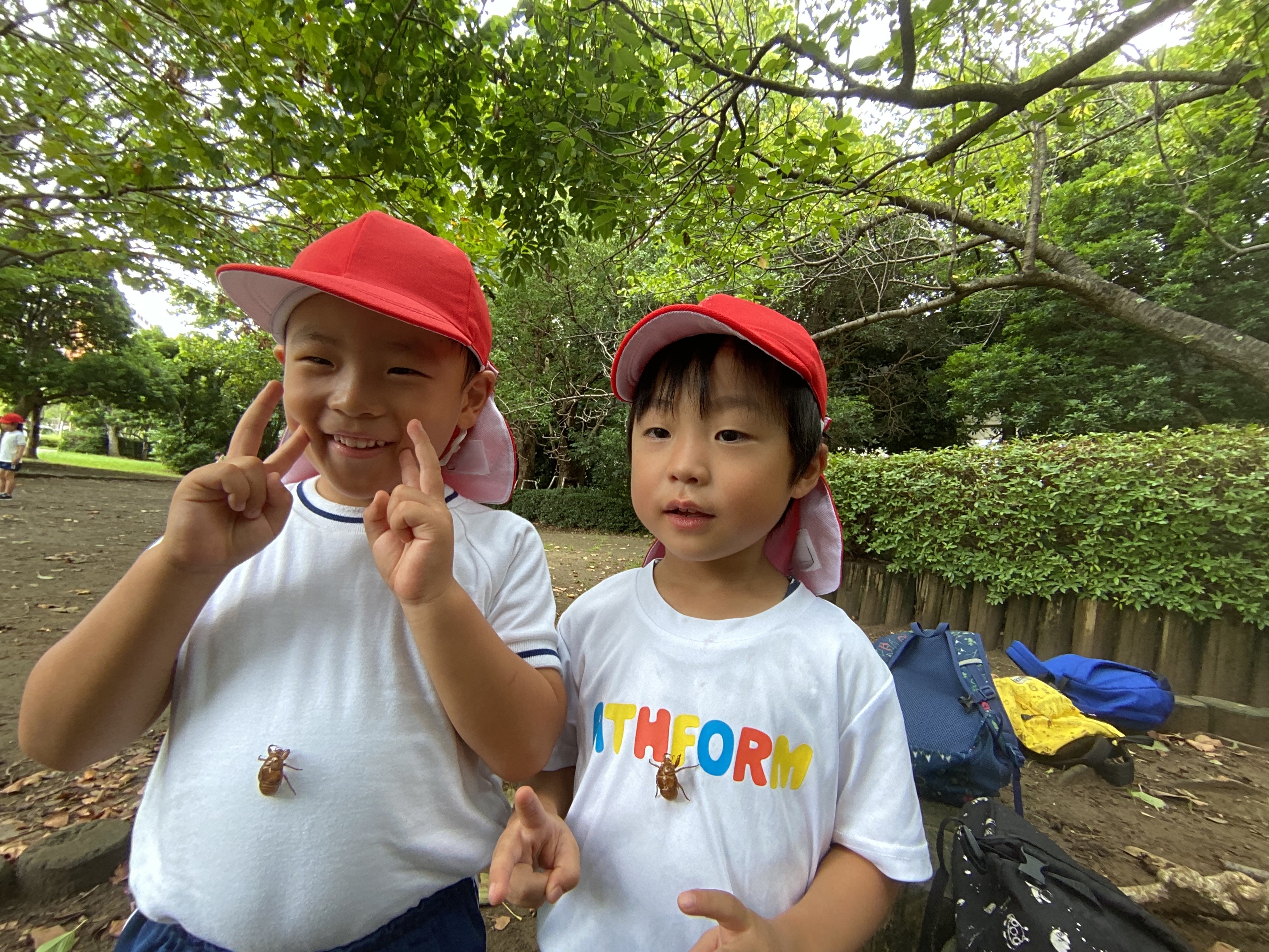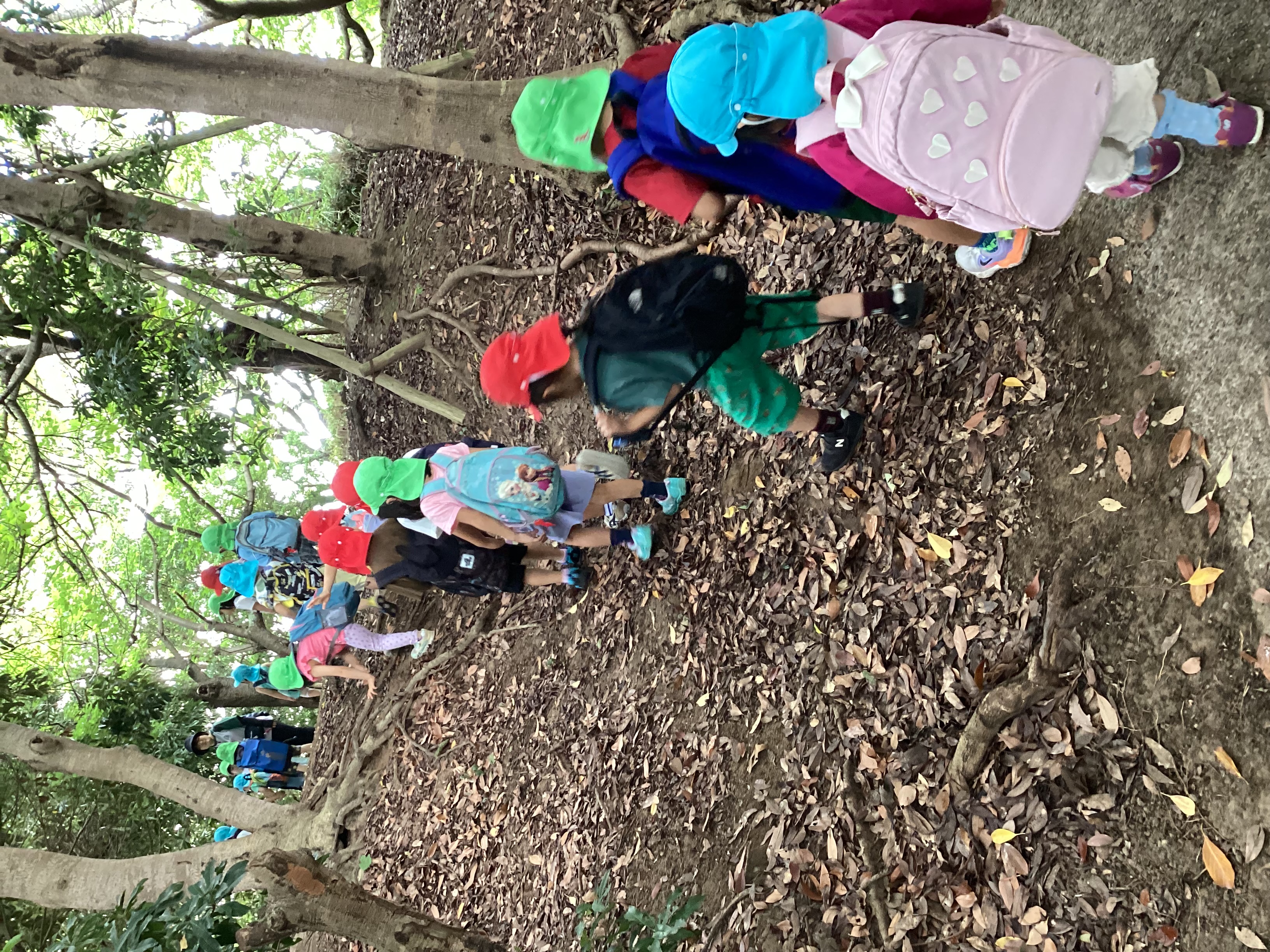 〈戸外活動〉8月は暑い日が続き戸外に出られない日が多かったですが、戸外に出られた際は虫探しを楽しんだりセミの抜け殻等をたくさん見つけたりしながら周遊散歩を楽しむ姿が見られました。また、散歩の途中に美浜運動公園で、山登りにも挑戦しましたよ。