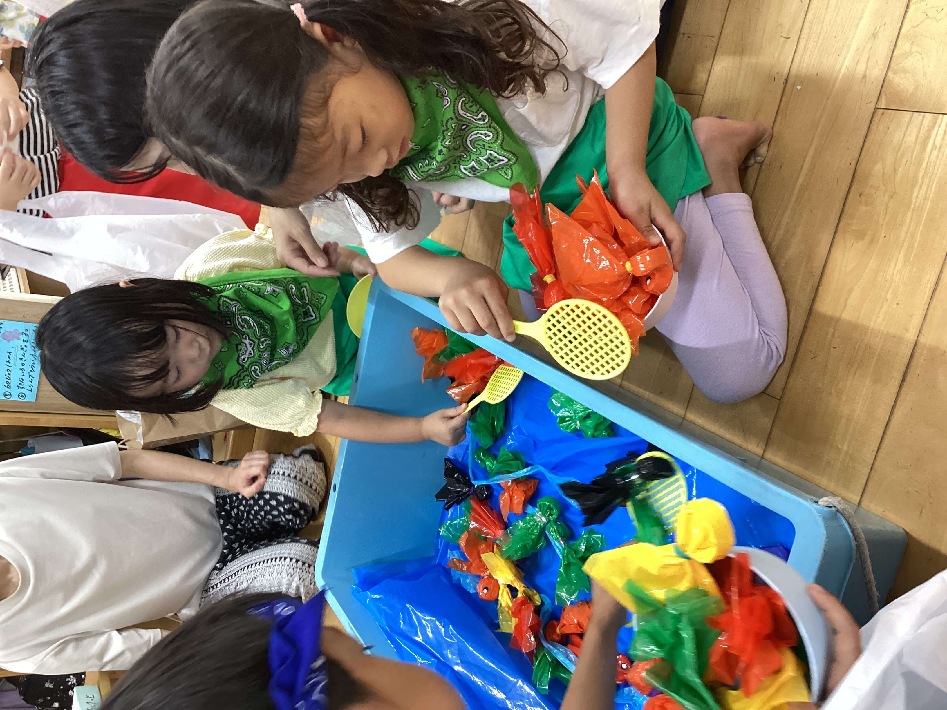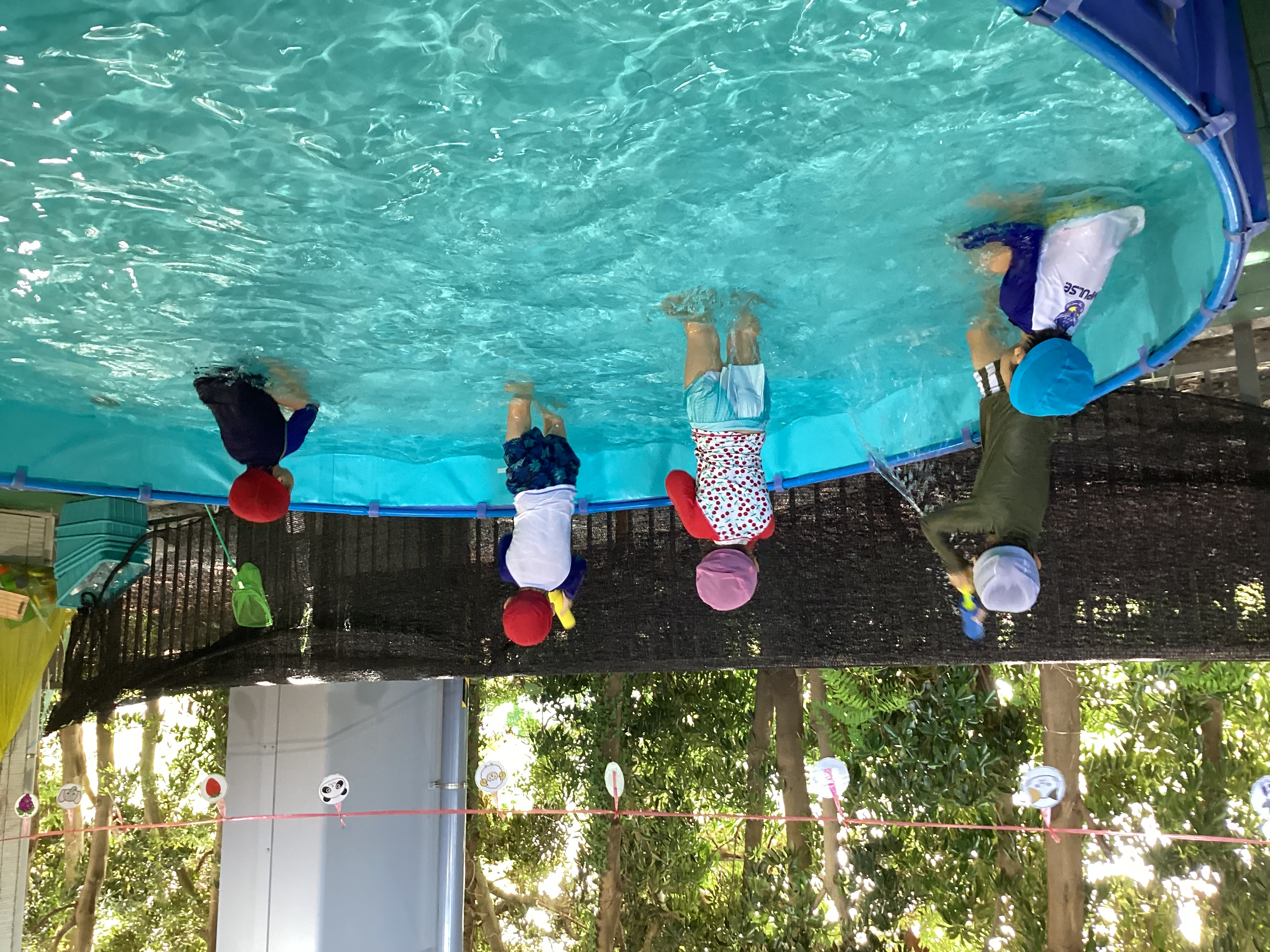 子どもたちから「流れるプールやりたい!」「水鉄砲やりたい!」等とリクエストをしながら活動を楽しみました。特に的当てゲームは人気で、「的に当たったよ!」と喜ぶ子どもたちの姿はとても可愛らしかったです。