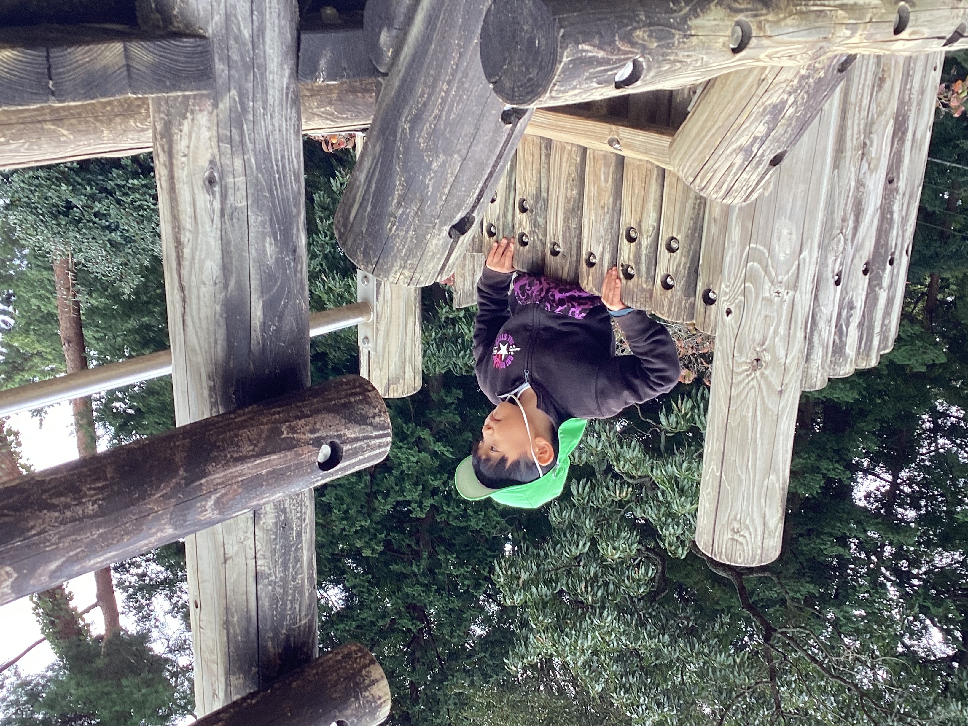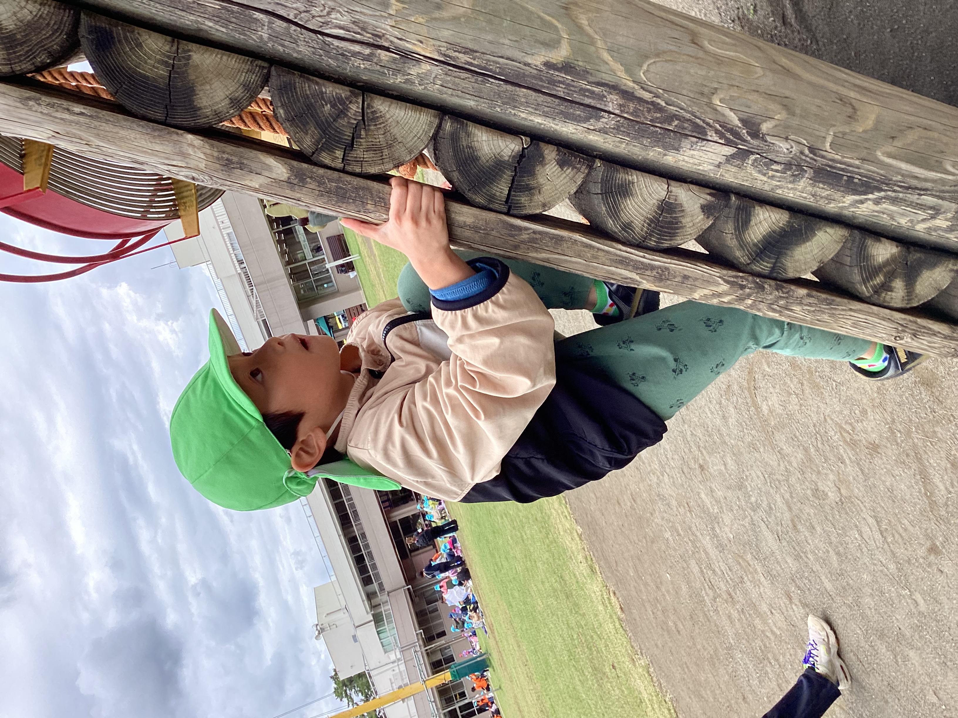 食べ終わった子から広場で遊びました。大型遊具にトンネルや綱を使って登り、滑り台をして何度も楽しみました。また広場では鬼ごっこや押し相撲などをしている姿もありました。