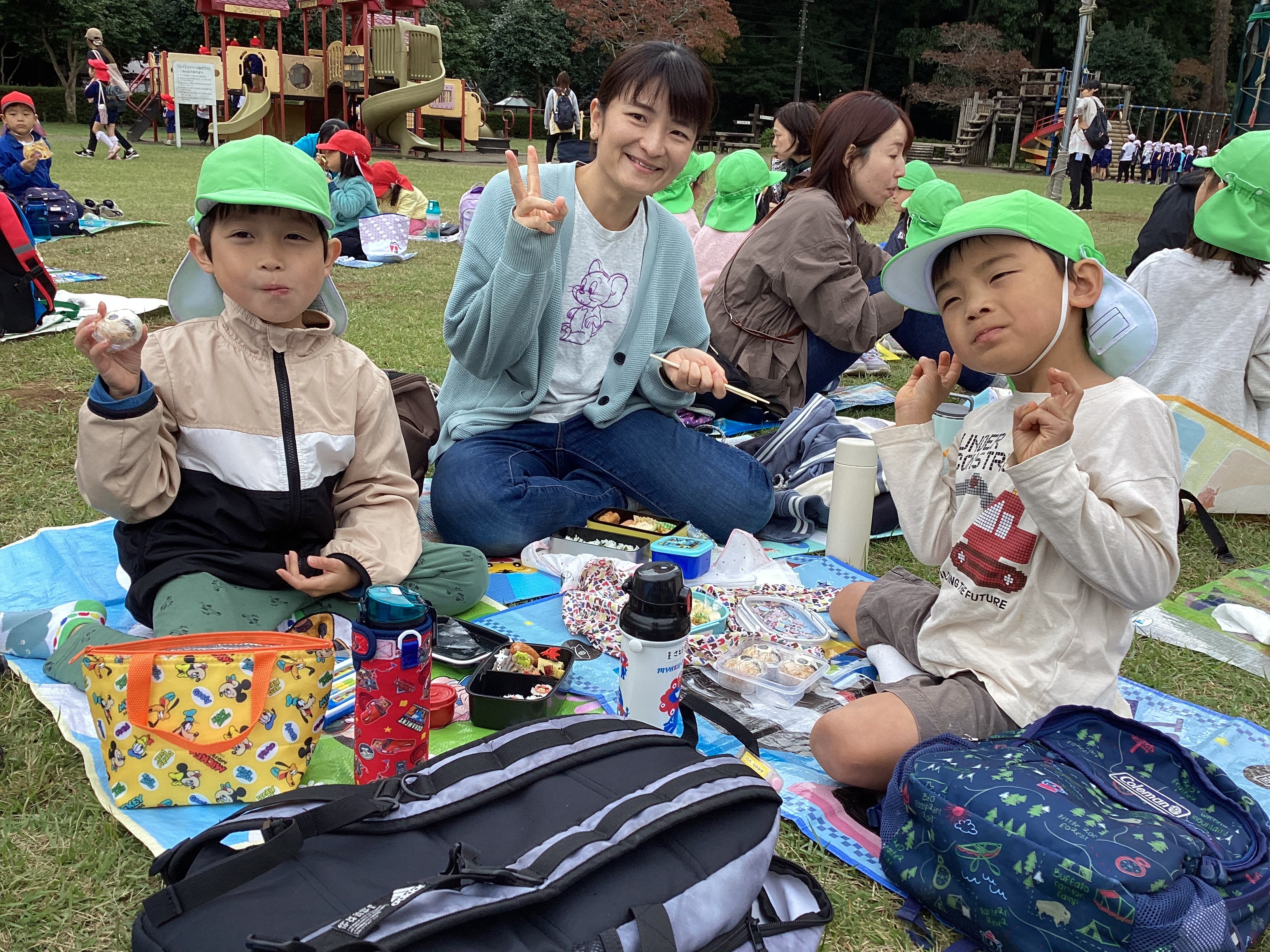 公園でお弁当を食べることをずっと楽しみにしていたピクニック!ゲームや自由遊びをして楽しく過ごしました。お弁当の時間では、友だちと「見てー!」とお弁当を見せ合いっこしていましたよ。