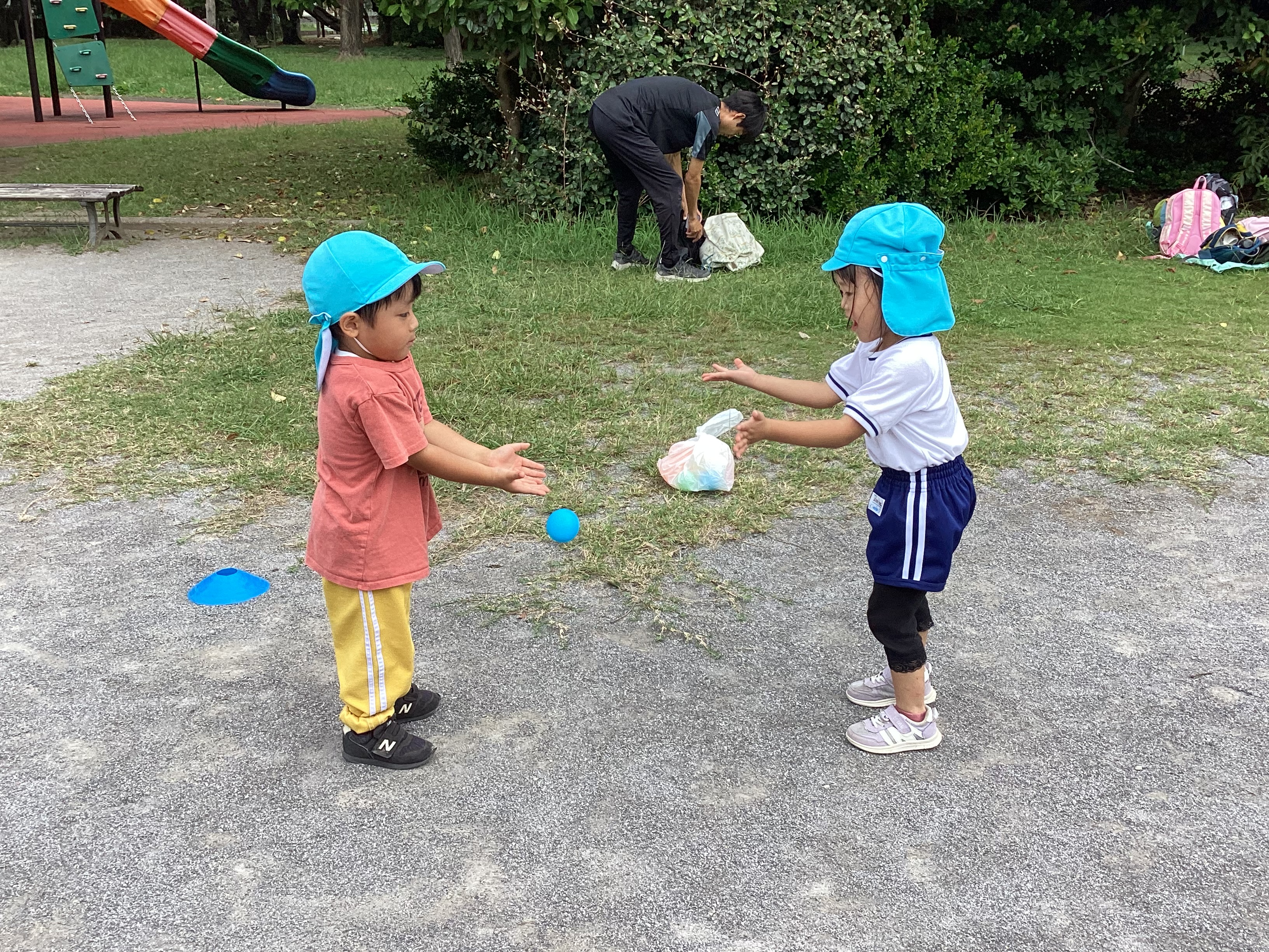 10月からは戸外での運動あそびが始まりました。沢山走ったりボールやマーカーなどの道具を使ったりして気持ち良く身体を動かしています!