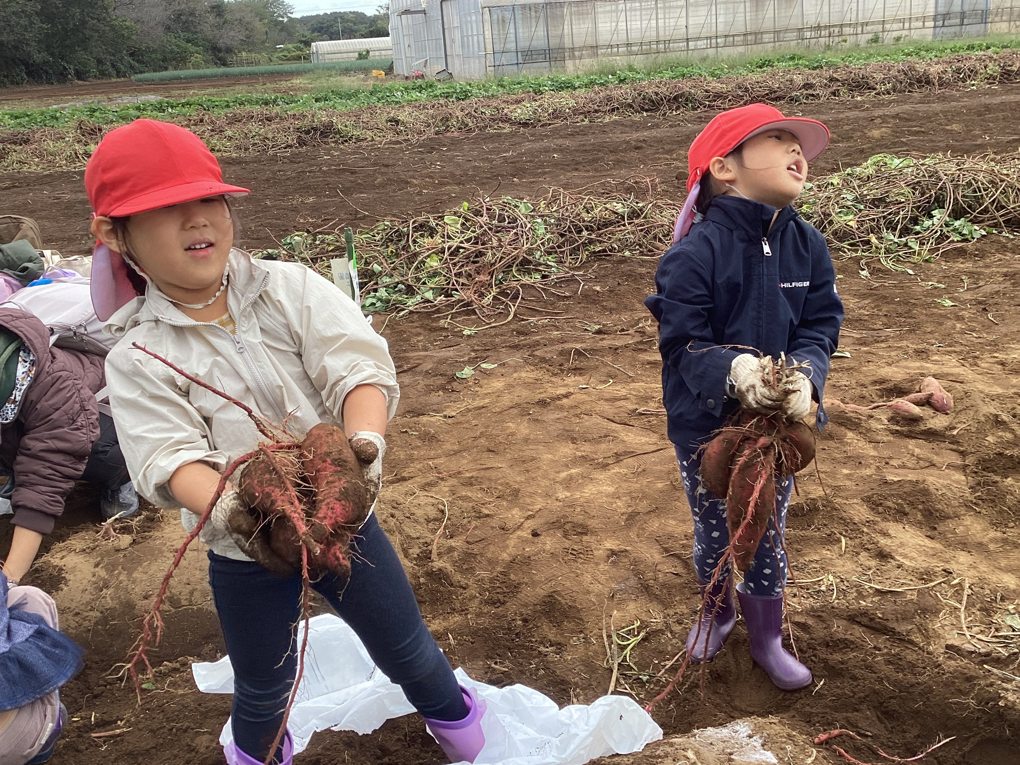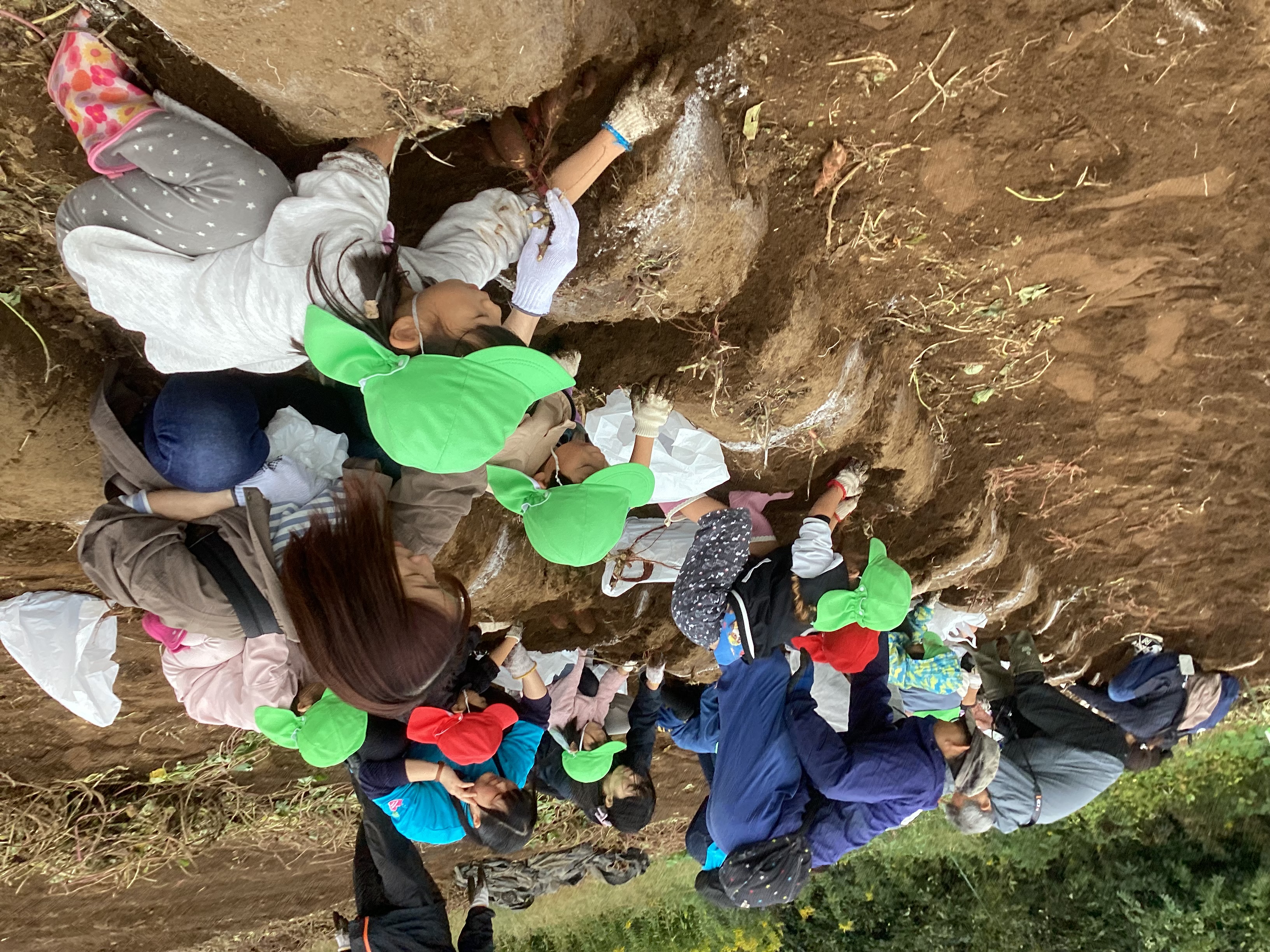 佐倉草ぶえの丘に芋掘り遠足に行きました。土を沢山掘って芋が採れると「見て!大きいよ!」と目を輝かせて大喜びでした!その後はミニ鉄道のドクターイエローに乗ったり、大きな固定遊具で遊んだりしました。楽しみにしていたお弁当では、友だちと中身を見せ合ったりお話ししたりしながら楽しい時間を過ごしました!
