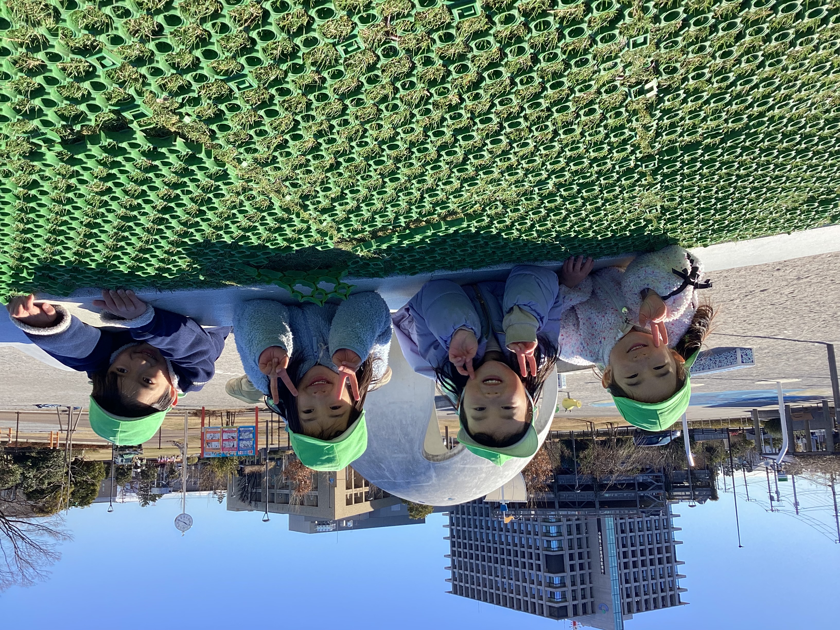 今年は年の初めに雪が降り、公園に遊びに行くとまだ雪があった為、雪だるま作りや雪合戦を楽しむ姿が見られました。また、羽根つきや自分たちで作った凧揚げなどお正月ならではの遊びもたくさん楽しみました。きりん組の子どもたちに大人気の公園に行った時には滑り台の上で素敵な笑顔がたくさん見られました。