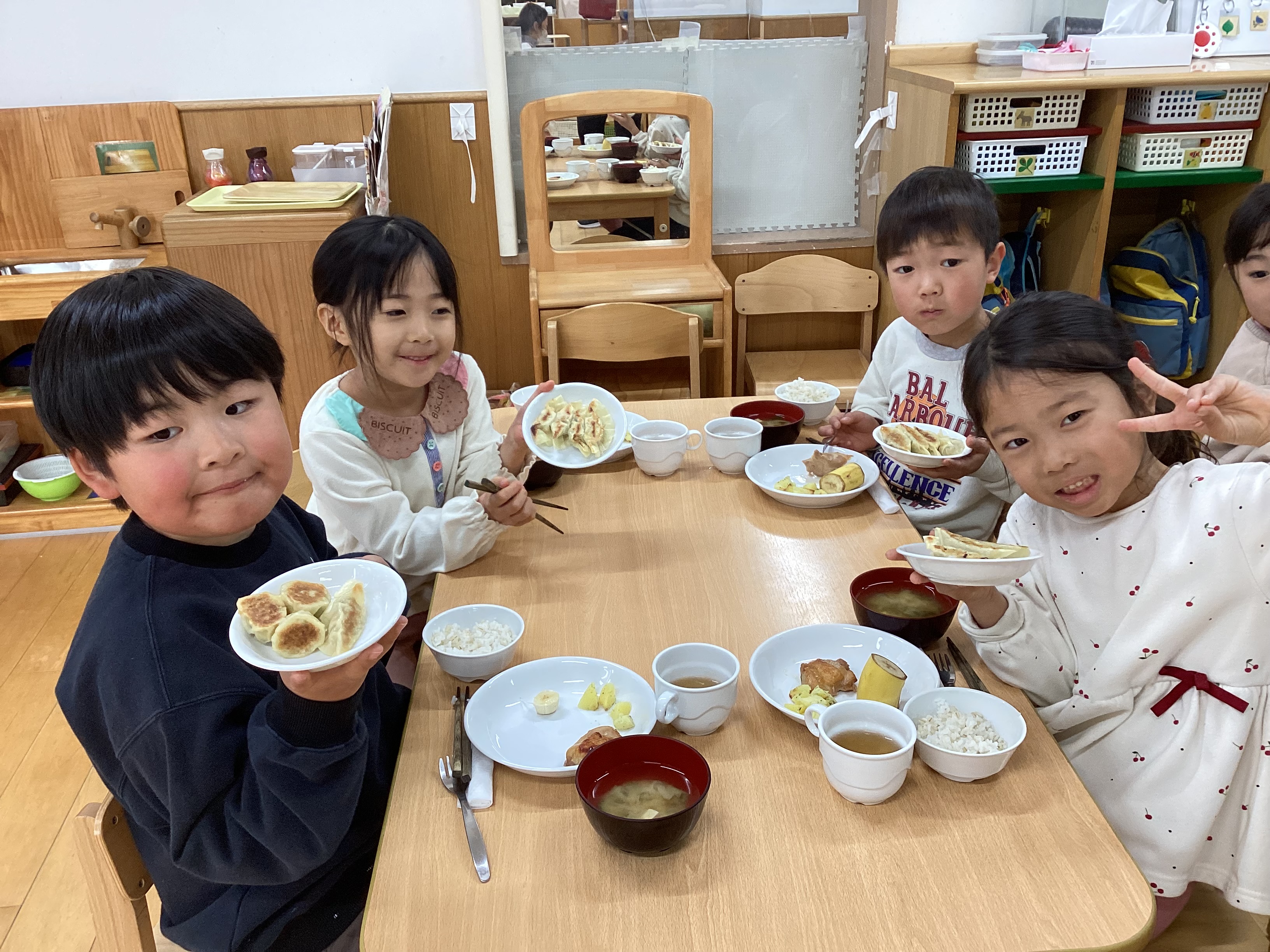 ひだがたくさんある餃子を作る子や「シュウマイみたいにする」という子など様々な餃子が出来ました。頑張って作った餃子はとても美味しかったようで「もっと食べたかった」と言っている姿が見られました。